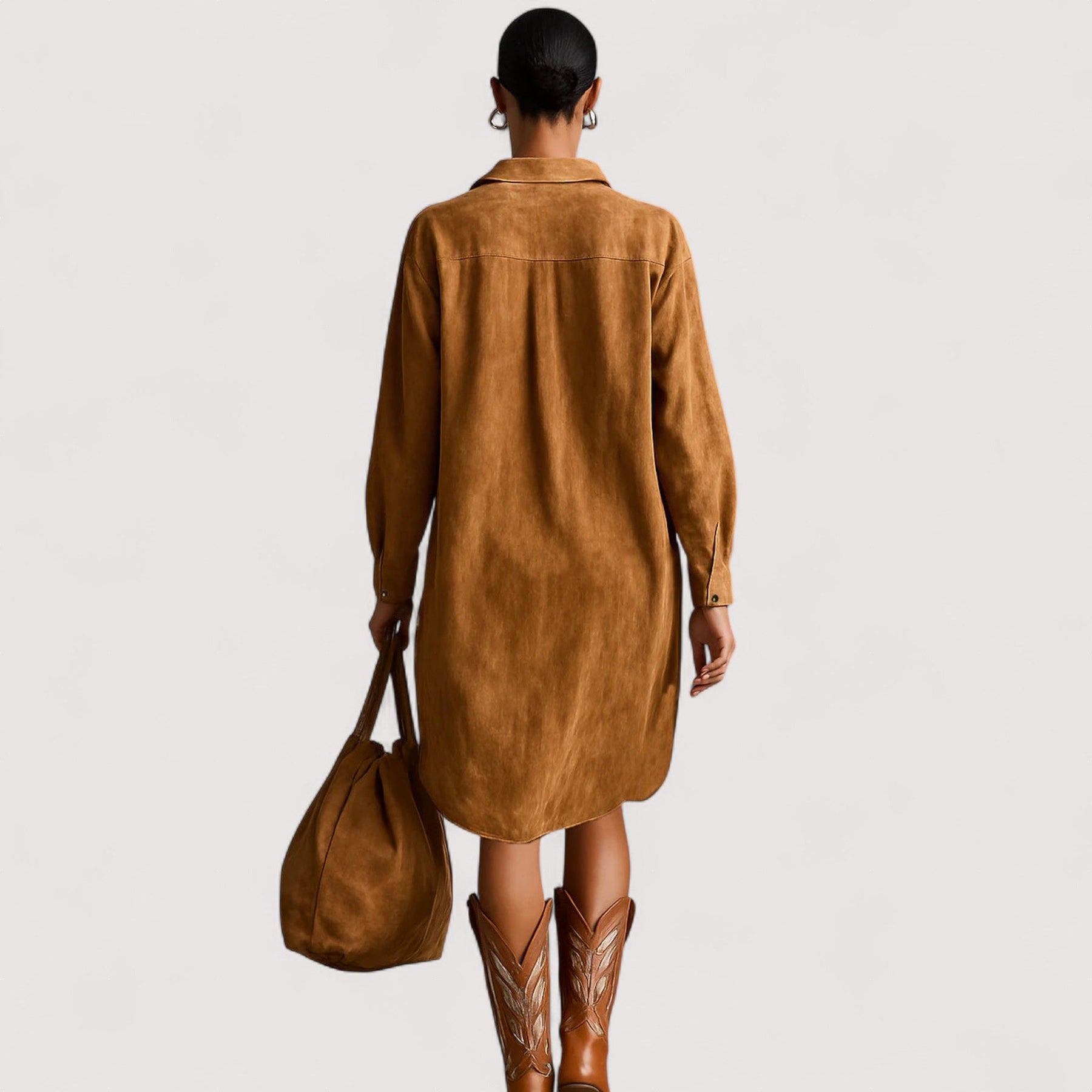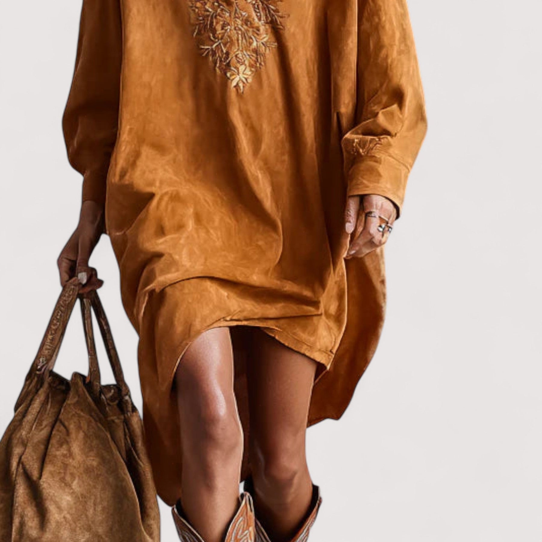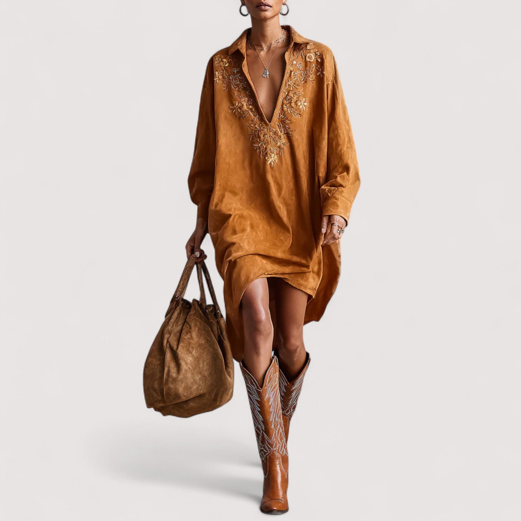 Kroj koji laska figuri: Opušteni kroj midi duljine i elegantni V-izrez savršeno ističe vašu siluetu.