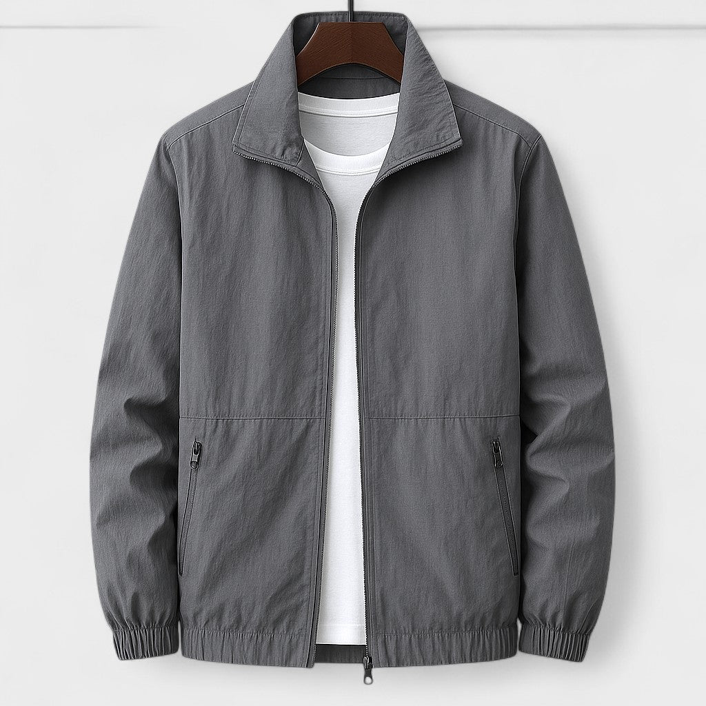 Ova ležerna jakna idealan je izbor za one koji žele decentnu eleganciju i svakodnevnu funkcionalnost. Sa svojim modernim, laganim dizajnom i vrhunskom završnom obradom, savršeno se uklapa u različite stilove i prilike – od posla do slobodnog vremena. Ima dvostruki patentni zatvarač sprijeda, bočne džepove sa sigurnim zatvaranjem i elastične manžete koje jamče ugodno pristajanje.
