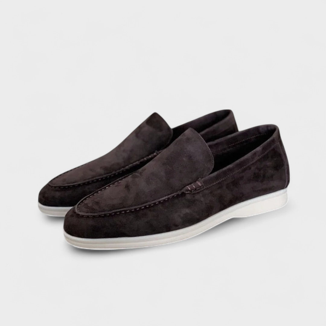 Ove muške cipele spajaju diskretnu eleganciju s potpunom udobnošću. Baršunasti završni sloj i slip-on dizajn osiguravaju praktičnost za svakodnevno nošenje bez gubitka sofisticiranog dojma. Kontrastni đon daje im moderan izgled, idealan za sve – od ležernog, šik stila do formalnijih kombinacija.
