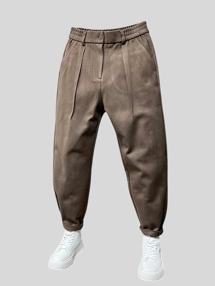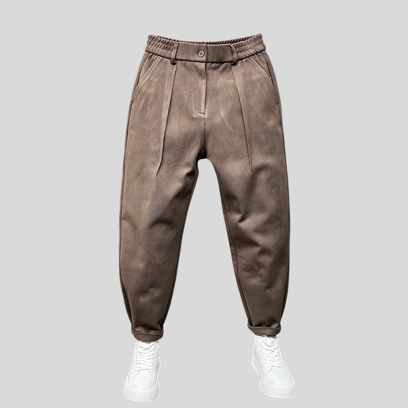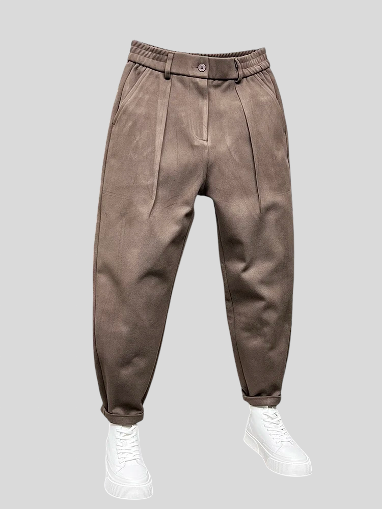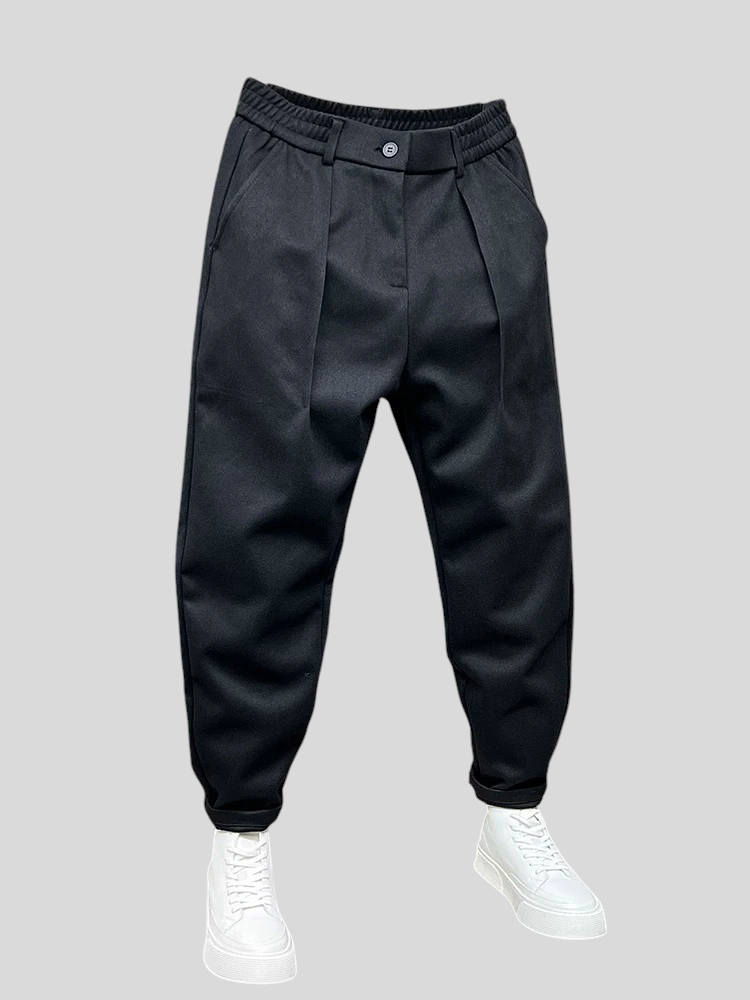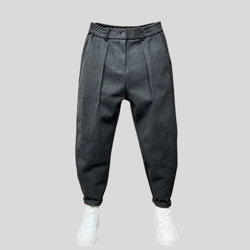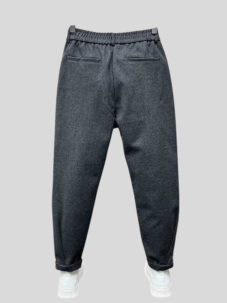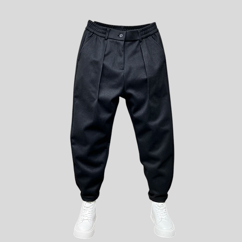 SmartEase hlače savršen su izbor za one koji cijene moderan izgled bez odricanja od udobnosti. S suženim krojem i strukturiranim detaljima, ove hlače spajaju ležerni stil s profinjenošću klasične krojačke izrade. Elastični pojas pruža idealnu fleksibilnost za svakodnevne aktivnosti, dok prednji nabori dodaju dašak sofisticiranosti. Idealne za posao, šetnju gradom ili večeru sa stilom.