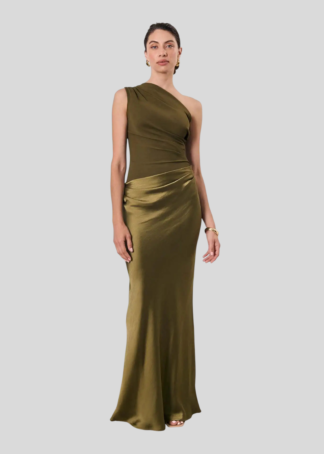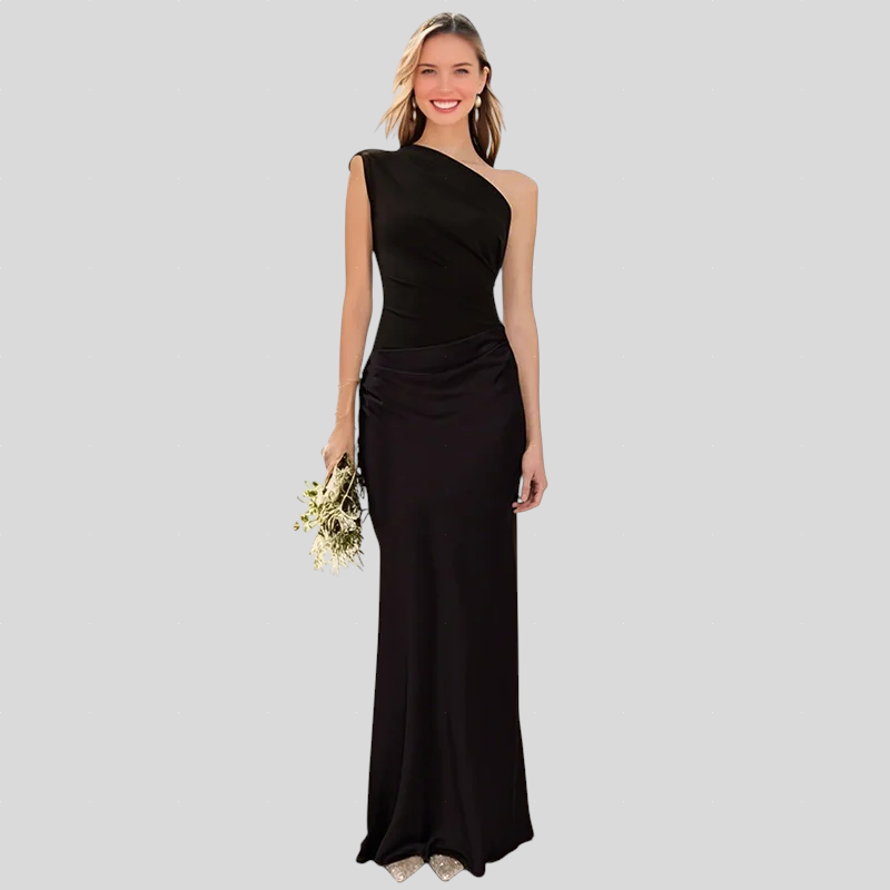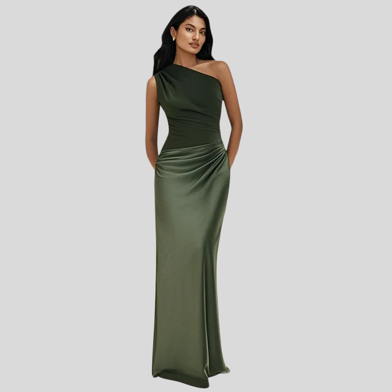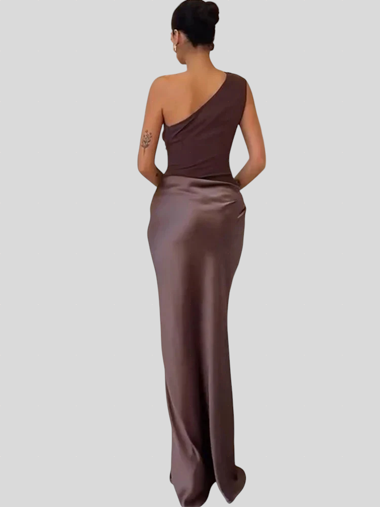 Saten Haljina Na Jedno Rame Maxi Elegancije