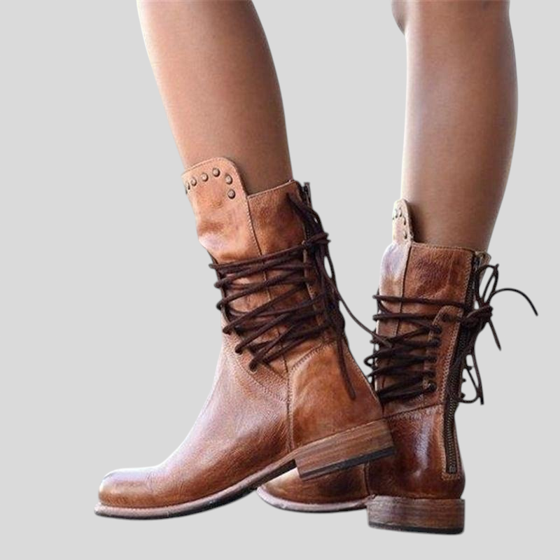 Ove čizme savršene su spoj elegancije i stava. S ručno izrađenim detaljima i svestranim dizajnom, lako se uklapaju u različite stilove – od ležernih kombinacija do sofisticiranih outfita. Srednje visok dizajn s vezicama omogućuje udobno prilagođavanje, dok čvrst potplat osigurava trajnost i stabilnost pri svakom koraku.